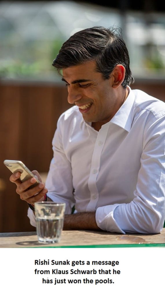 Pedalling the pandemic lies. He was brought in specially, the ‘hi risk anus’ (anagram of Rishi Sunak).